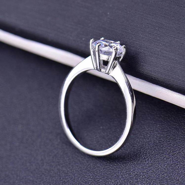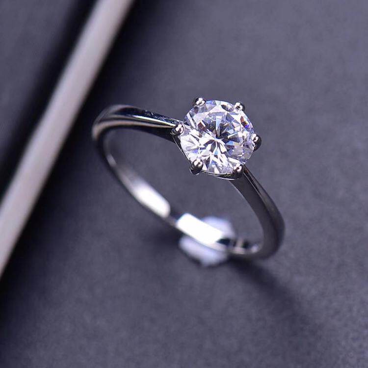 女钻戒 莫桑钻经典六爪款女戒指D色AU750求婚结婚戒指 莫桑石