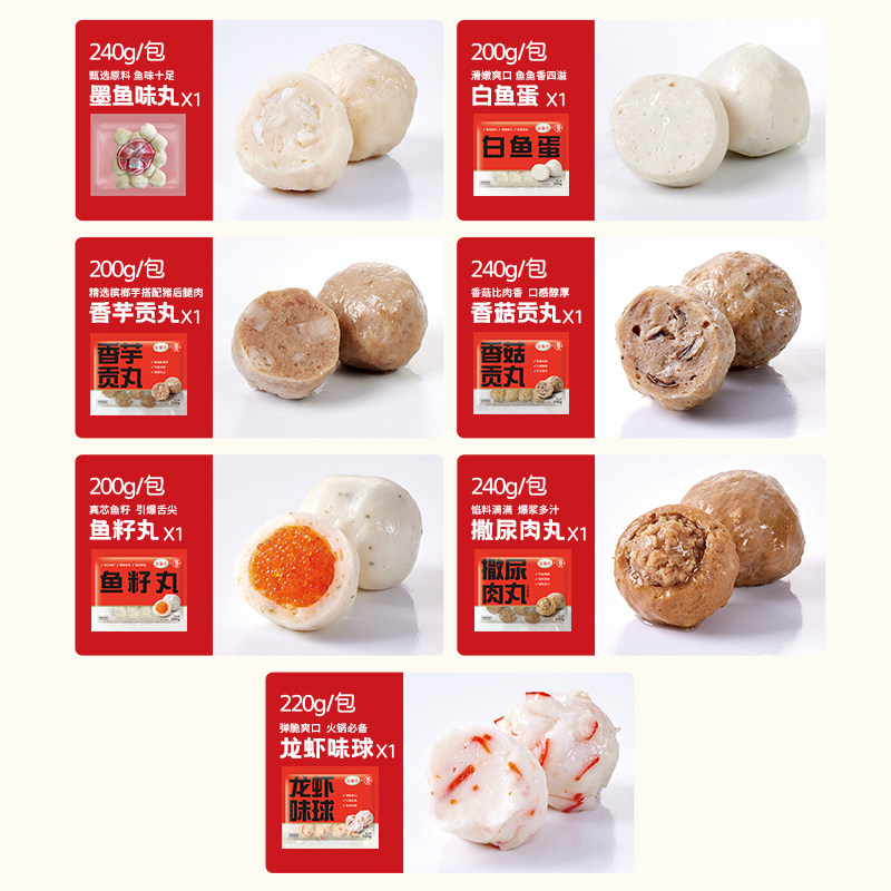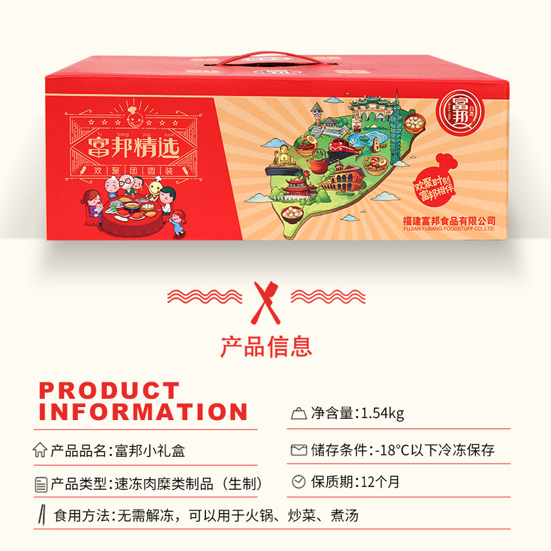 富邦年货礼盒送礼火锅丸子自由组合鱼丸套餐关东煮1.54kg(7包/件)