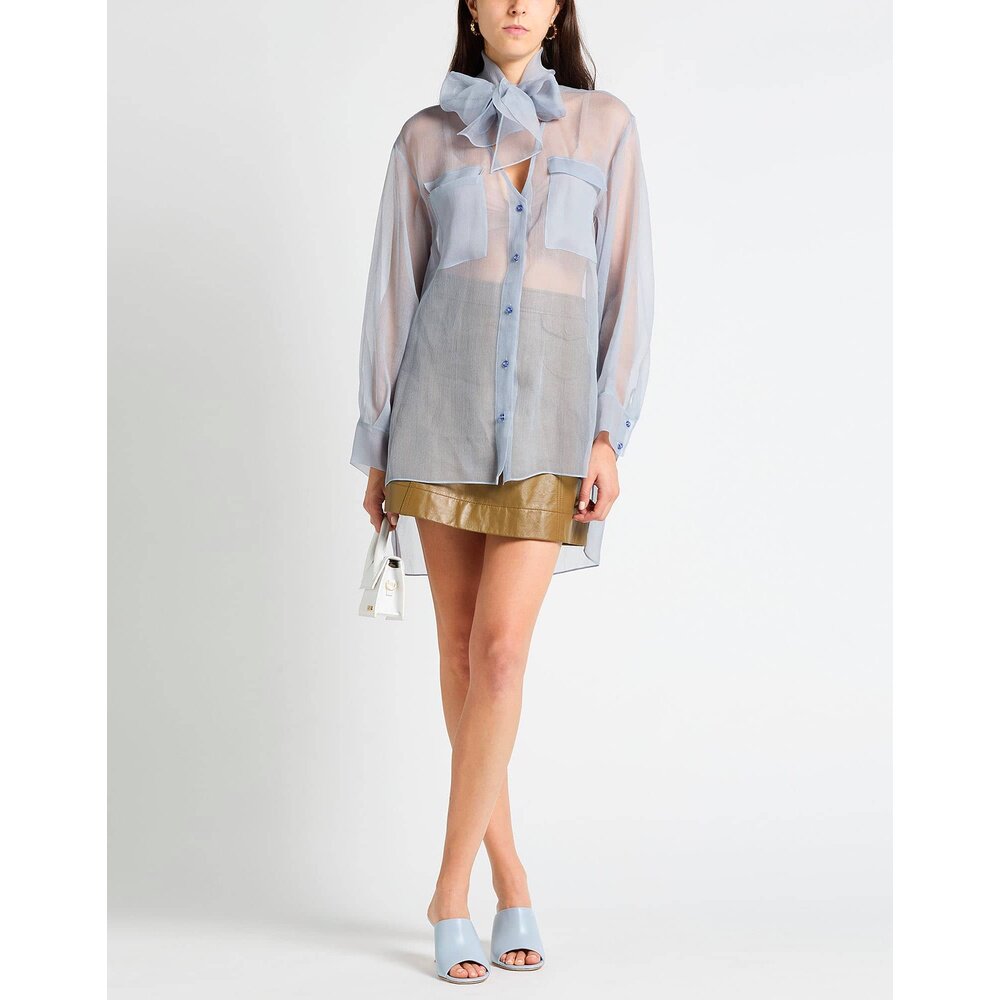 1h可退 香港直邮armani 阿玛尼 女士 Blouses 纯色衬衫 grey灰色