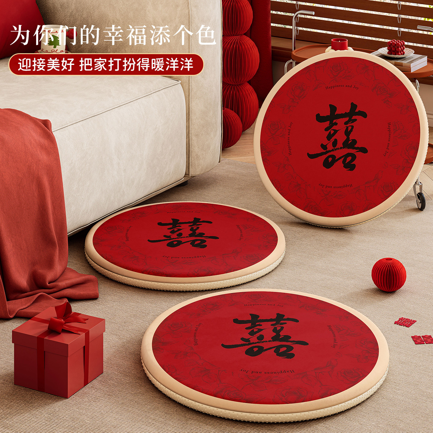 结婚圆形坐垫喜字榻榻米飘窗久坐屁垫红色喜庆懒人蒲团地上坐垫子