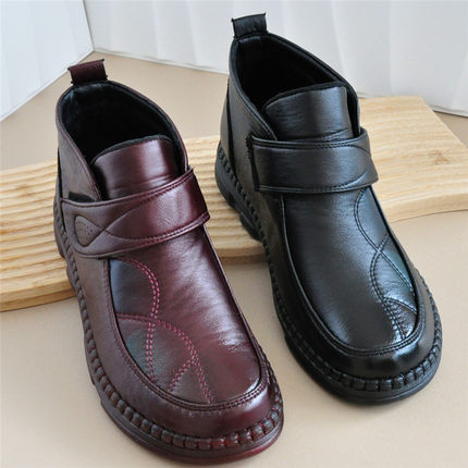 初冬老北京加绒女棉鞋二棉鞋薄绒高帮女短靴圆头平底休闲牛筋底黑