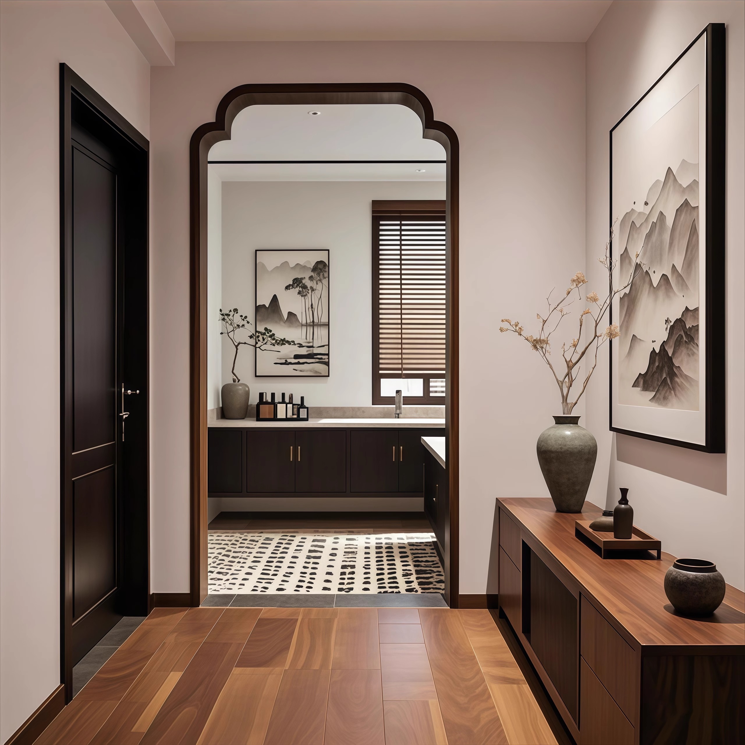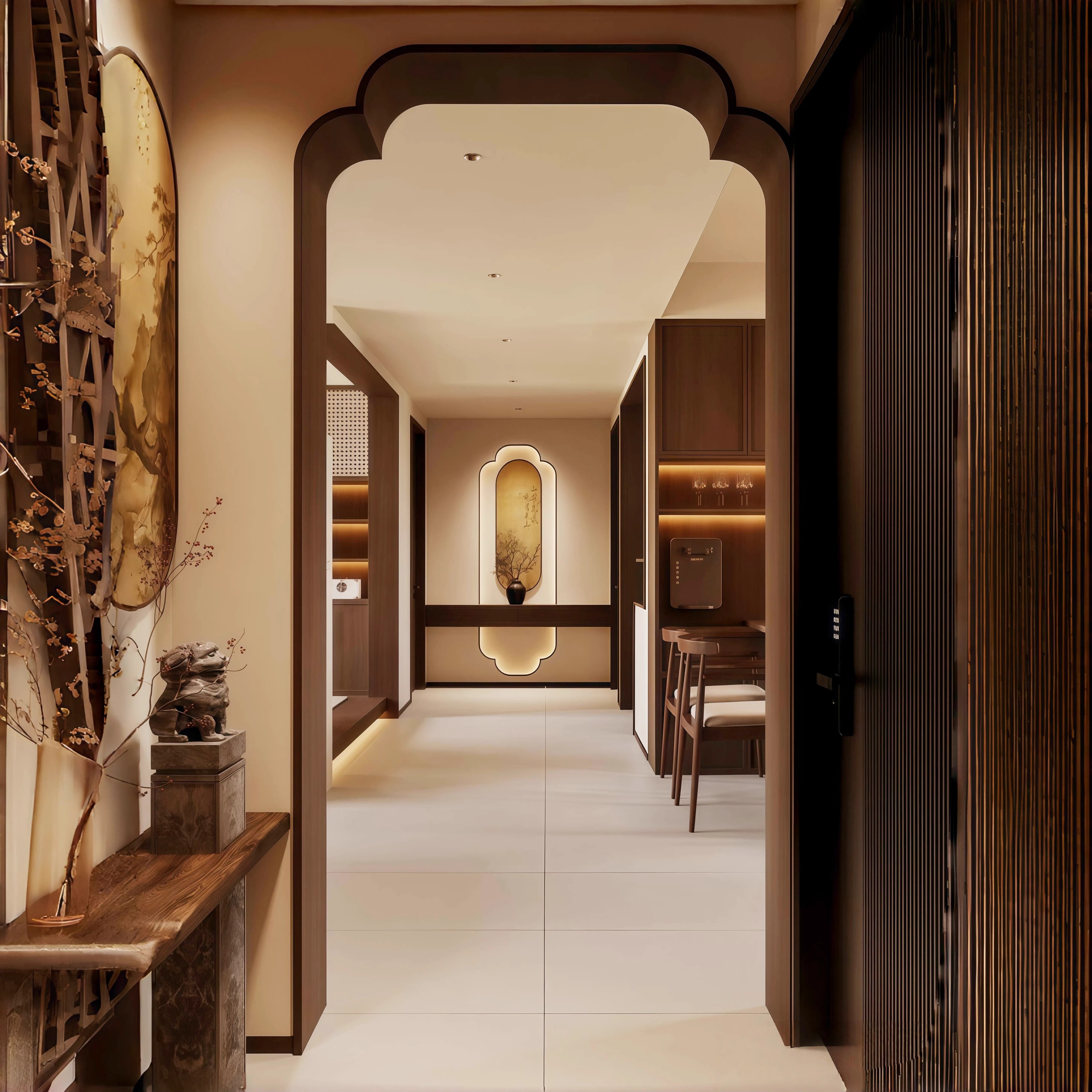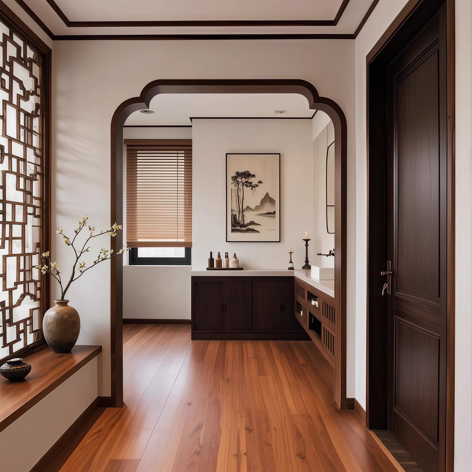 宋氏美学垭口包套线条新中式实木海棠小轩窗框玄关客厅隔断装饰