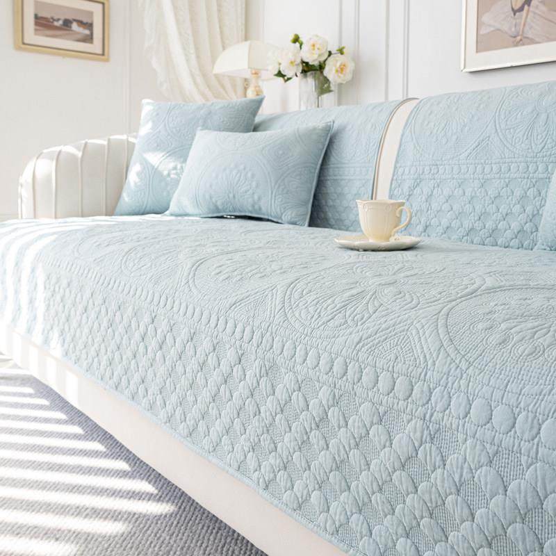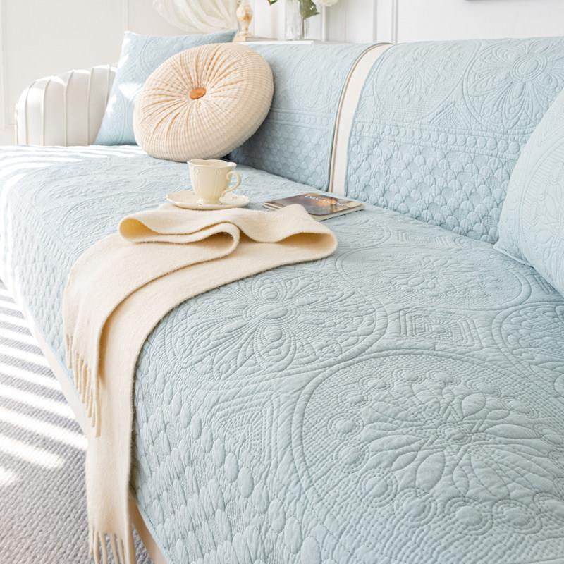 绣花全棉沙发垫四季通用防滑布艺坐垫法式覆古纯棉沙发套罩靠背巾