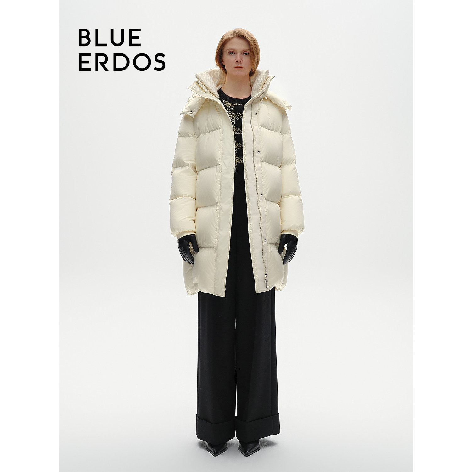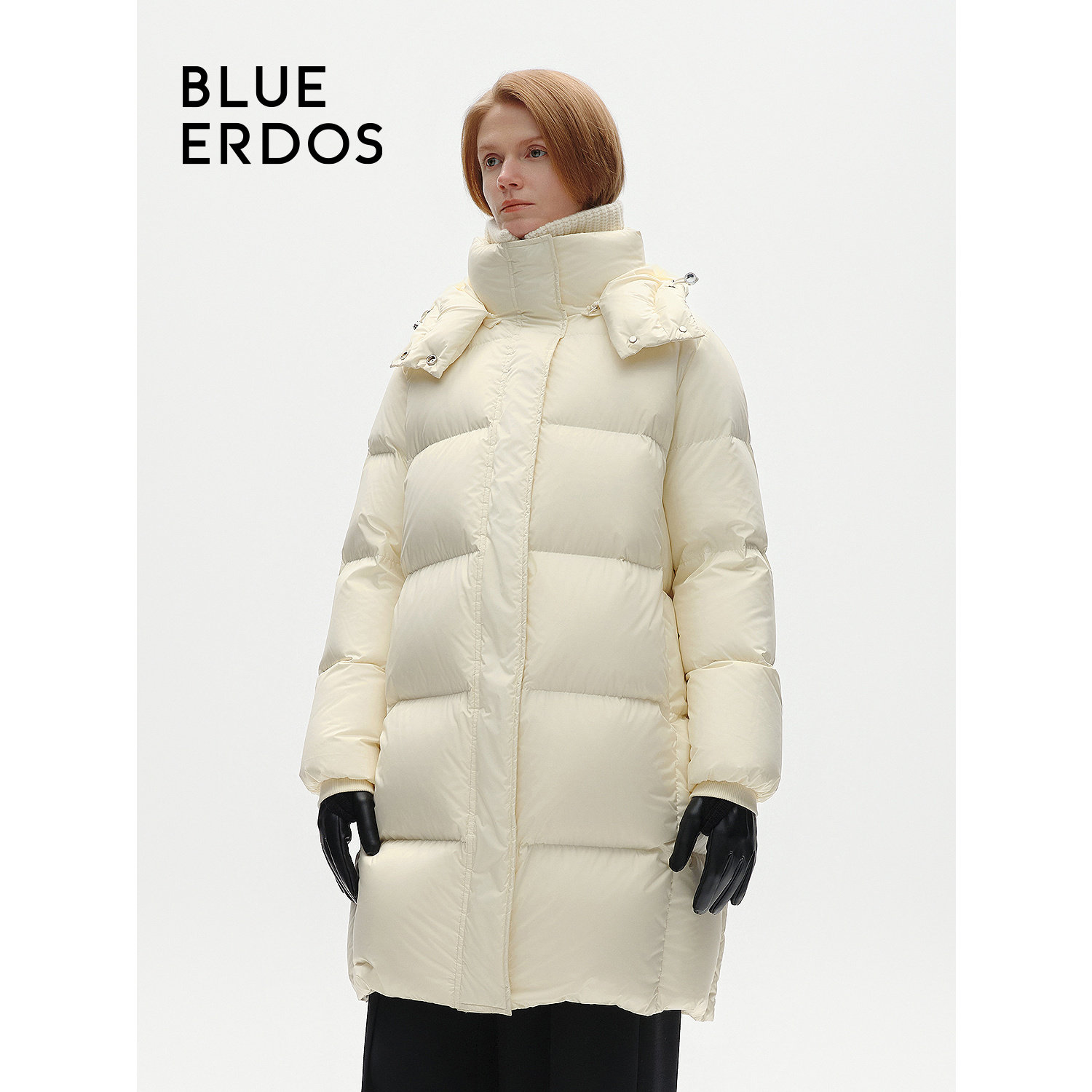 BLUE ERDOS冬季休闲简约白鸭绒保暖中长款羽绒服女B246JG011