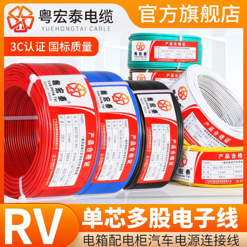 国标1.5 0.0铜芯75单1 控制 5 软线电线RV.股多芯电子线4平方 2.5