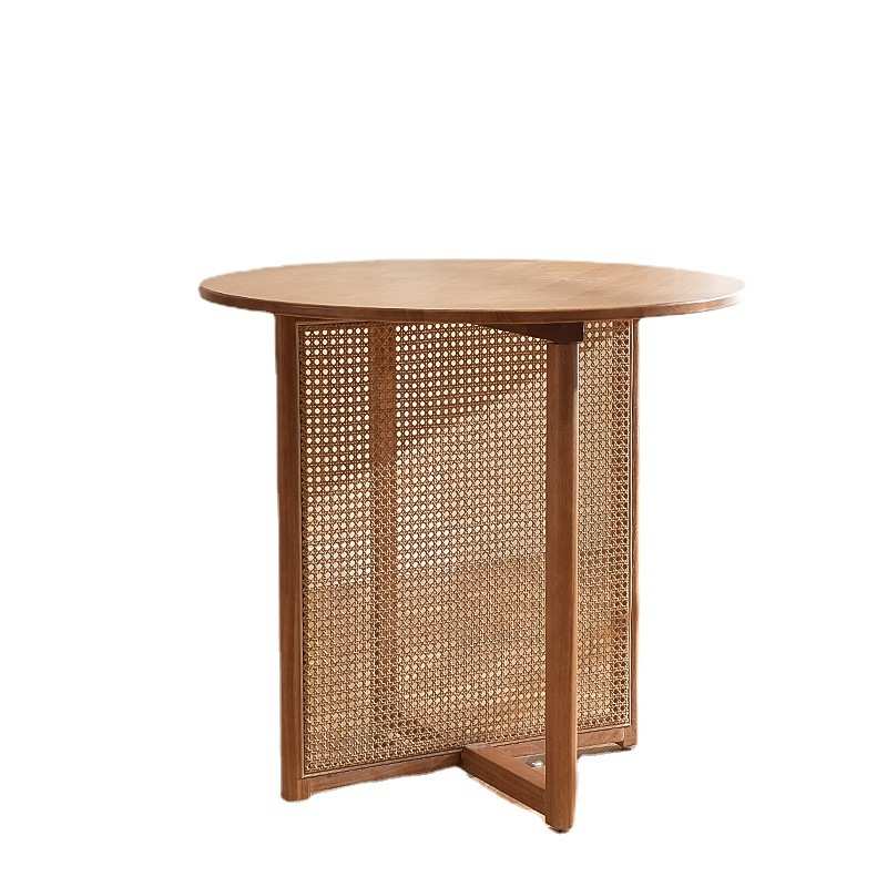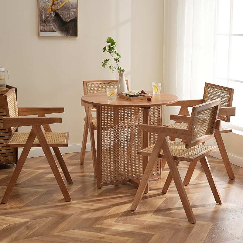 北欧实木藤编餐桌小户型家用圆形藤编餐桌椅民宿实木藤编桌椅组合
