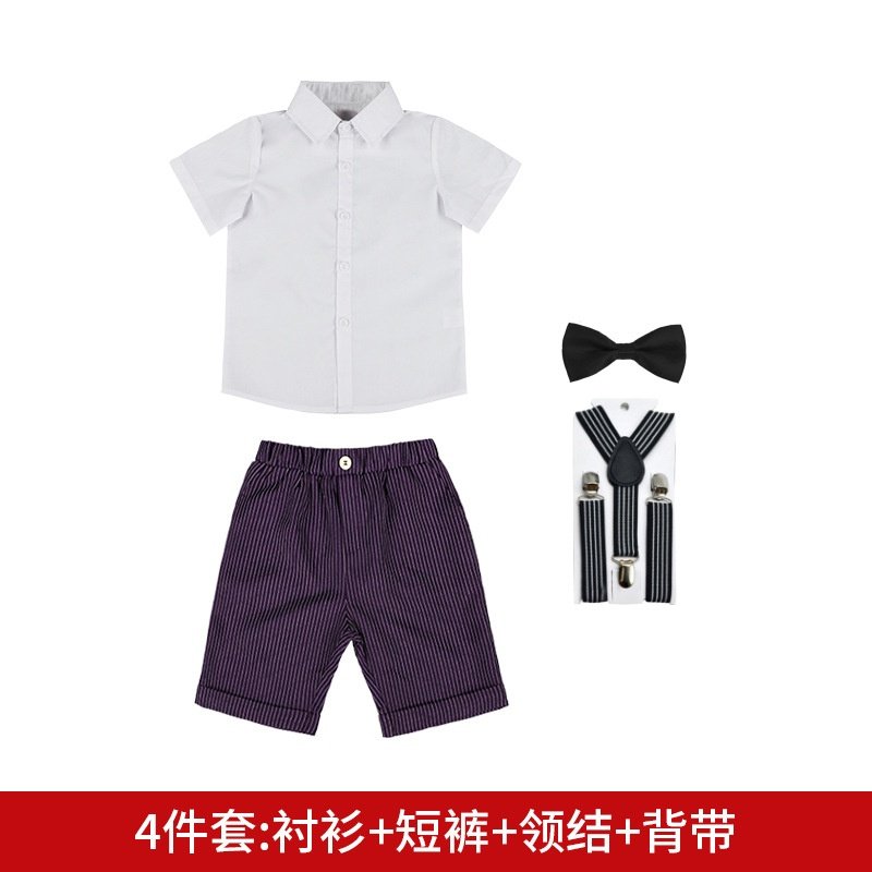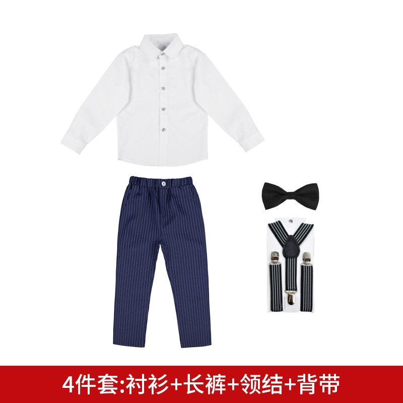会员扶持计划条纹背带裤套装男童花童婚礼主持演出服