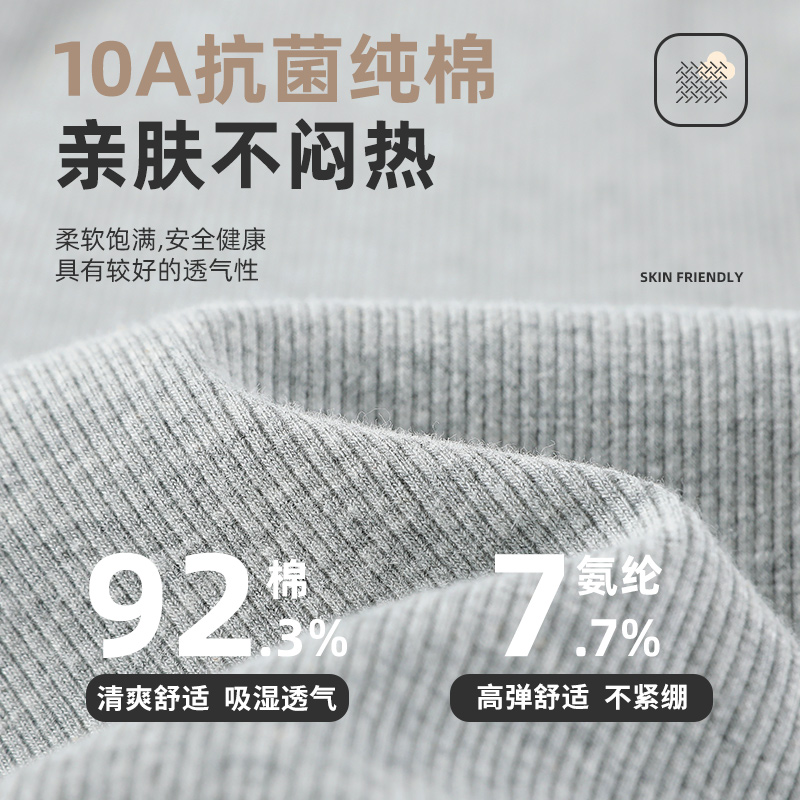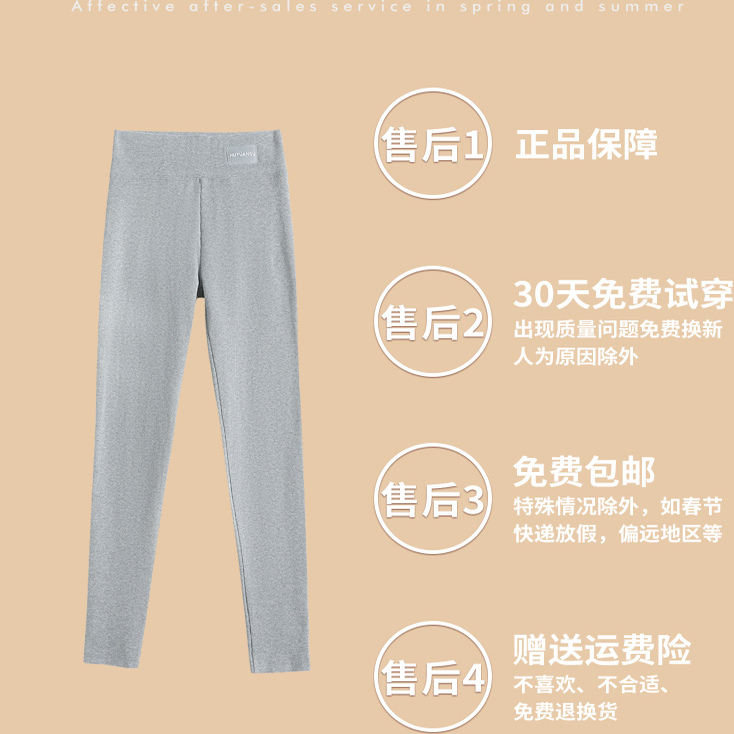 灰色纯棉打底裤女外穿春秋季薄款螺纹秋裤高腰紧身弹力大码九分裤