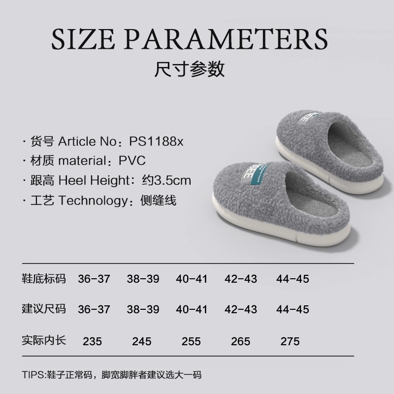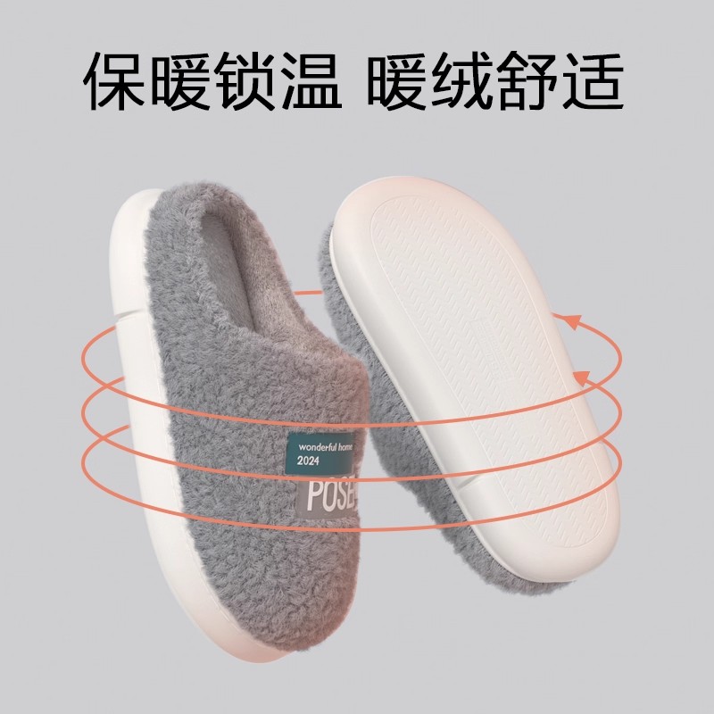朴西2025秋冬季棉拖鞋女居家室内保暖防滑静音情侣款毛绒拖鞋男