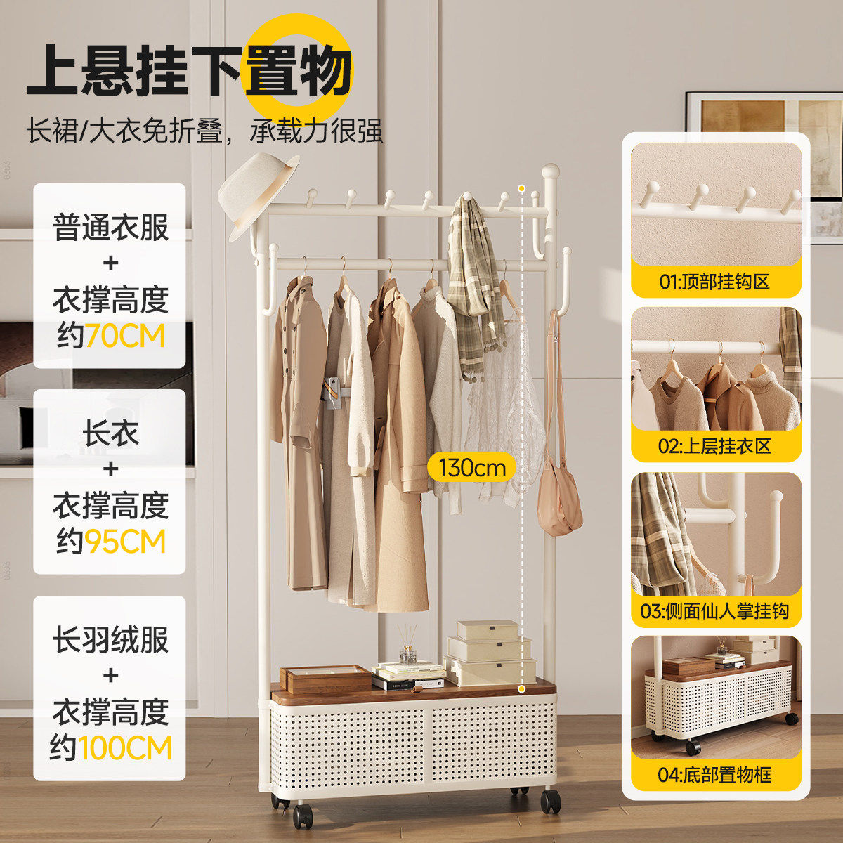 衣帽架落地卧室2026新款金属房间挂衣服架子可移动多功能家用衣架
