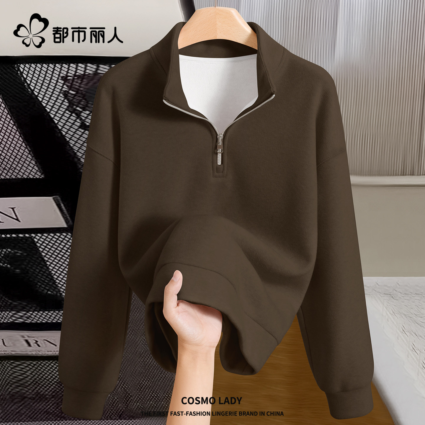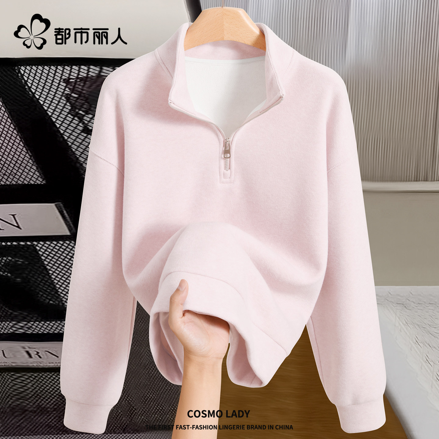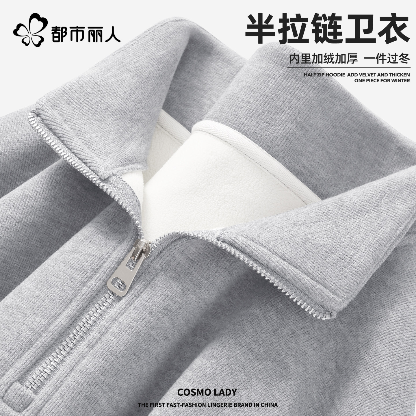 都市丽人加绒加厚卫衣女立领短款