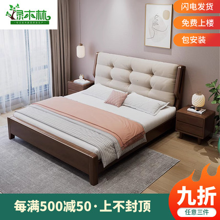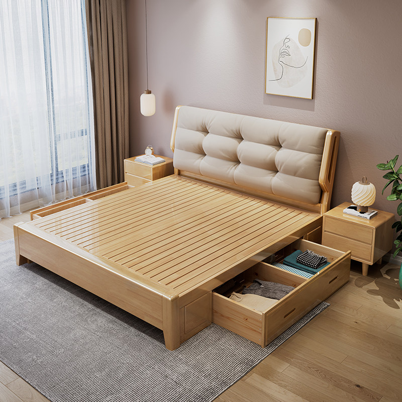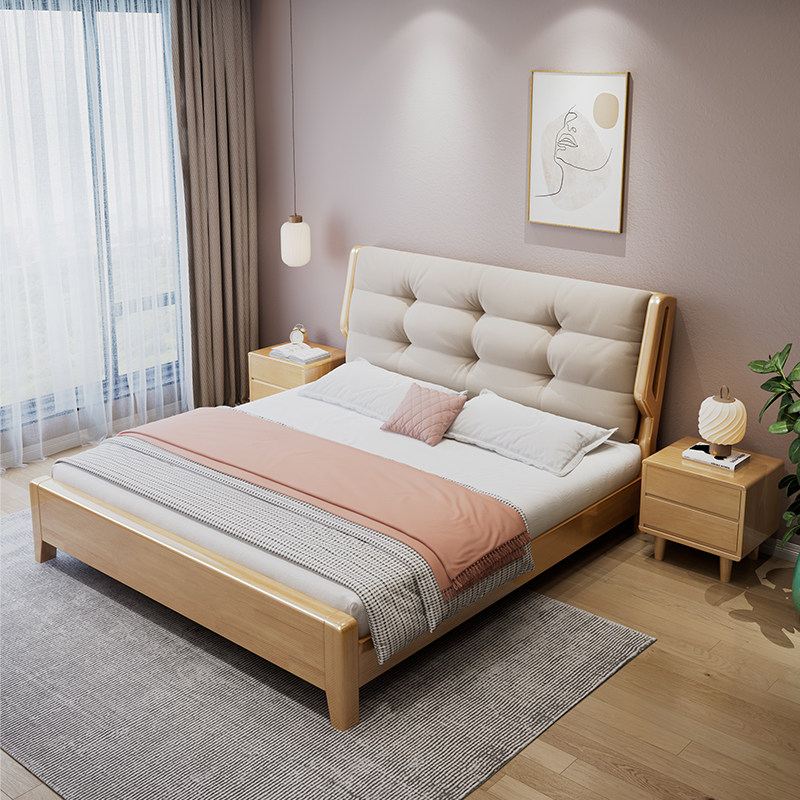 北欧云朵全实木床气压储物床主卧婚床1.8米1.35m日式双人大床软包