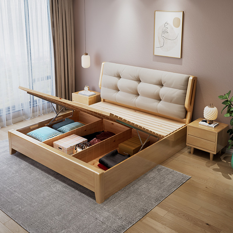 北欧云朵全实木床气压储物