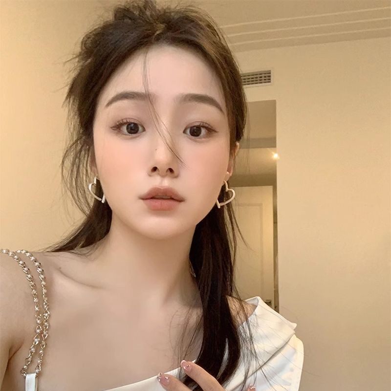 甜心气质三色爱心耳圈后挂式银耳钉轻奢小众耳环设计感高级耳饰女
