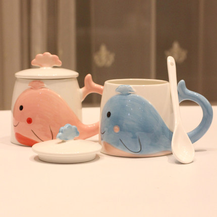 创意个性马克杯带盖带勺可爱潮流陶瓷杯清新简约情侣卡通大肚杯子