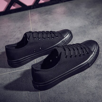 人本男鞋男款黑色男士上班休闲工作鞋纯黑全黑帆布鞋子老北京布鞋