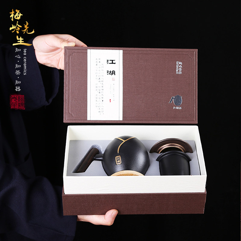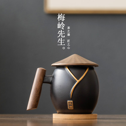 创意江湖茶杯个人专用高档茶水分离鎏银茶杯办公室陶瓷泡茶杯定制
