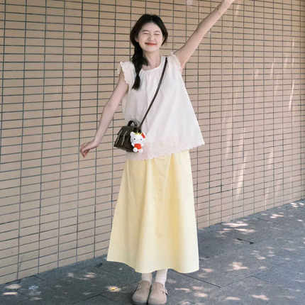 女夏新款一整套穿搭飞飞袖背心小衫上衣中长半身裙两件套装小个子