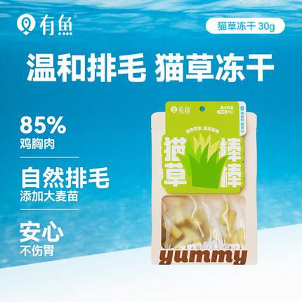 有鱼猫草冻干猫草棒磨牙化毛球增肥猫零食饼干猫草粒30g