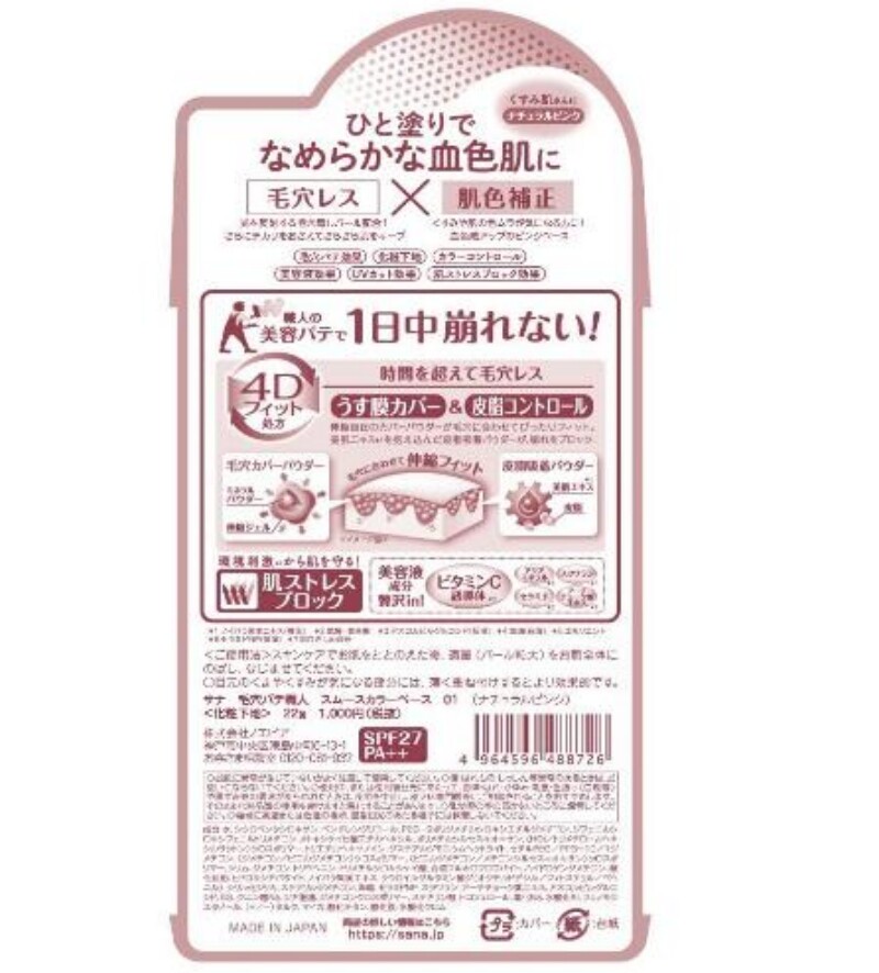 日本本土SANA毛穴职人隔离霜妆前乳打底保湿润色遮瑕提亮隐形毛孔