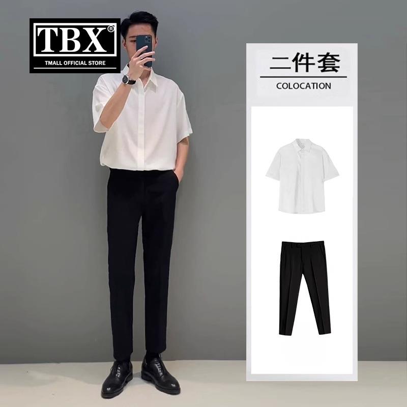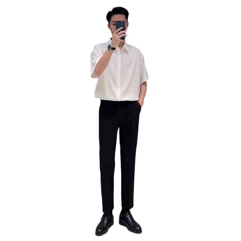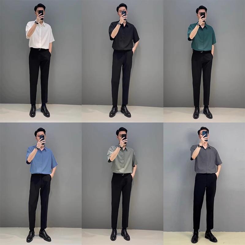 高端短袖衬衫套装男士2025新款商务休闲西裤男款高级感穿搭配西装