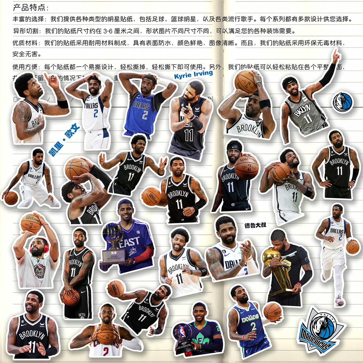凯里欧文贴纸高清防水蓝球运动员Kyrie Irving德鲁大叔收藏粘贴画