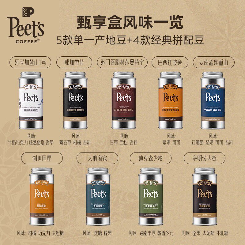 【咖啡豆礼盒】Peets皮爷多款风味甄享礼盒阿拉比卡咖啡豆60gx9罐
