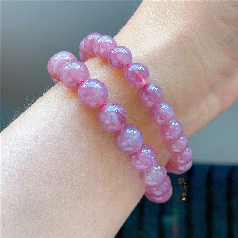 极速天然老矿紫马粉手链女粉w水晶马达加斯加手串紫粉色老料颜色