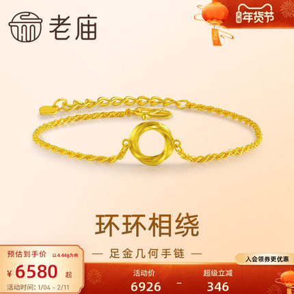 老庙足金几何简约圆满吉祥手链