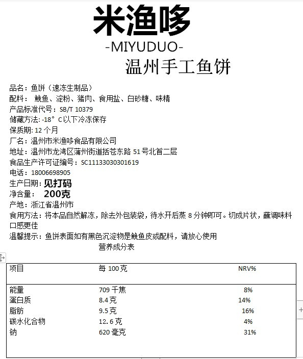 温州特产鮸鱼鱼饼鱼糕冷冻切片蒸热吃一份10条共4斤多省顺丰包邮