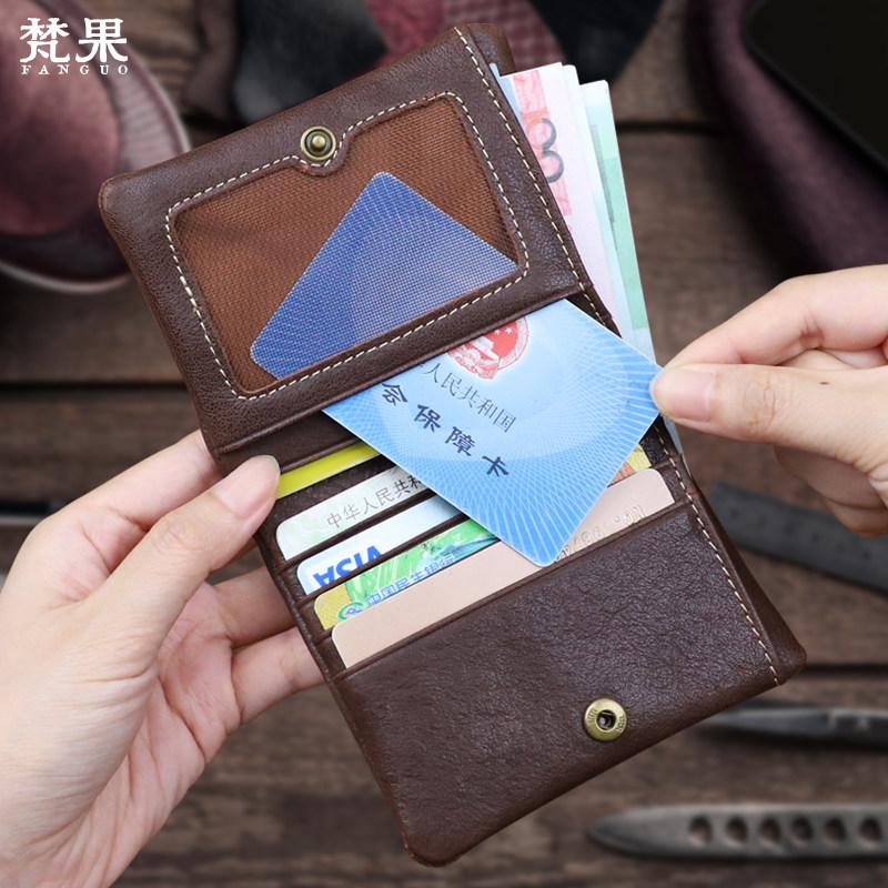 钱包男短款真皮头层植鞣牛皮复古钱夹手工复古多功能竖款软皮钱包