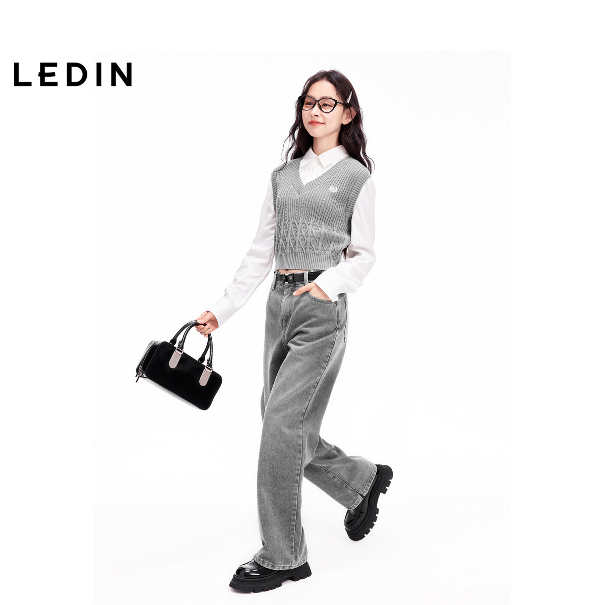 【商场同款】乐町24冬季新款优等生洗水牛仔阔腿裤C2HAE4307