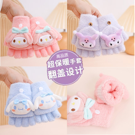 儿童手套卡通三丽鸥加厚保暖女童宝宝可爱翻盖写字秋冬季女孩手套