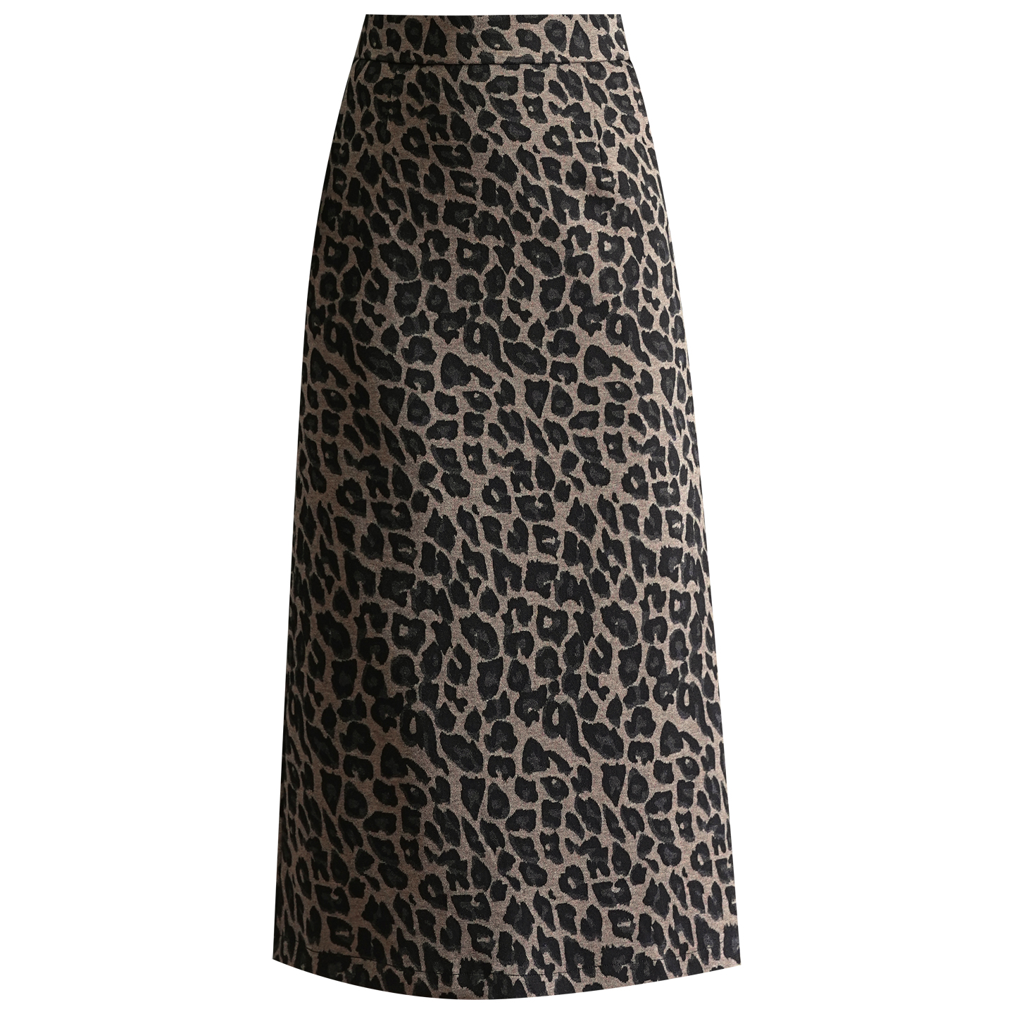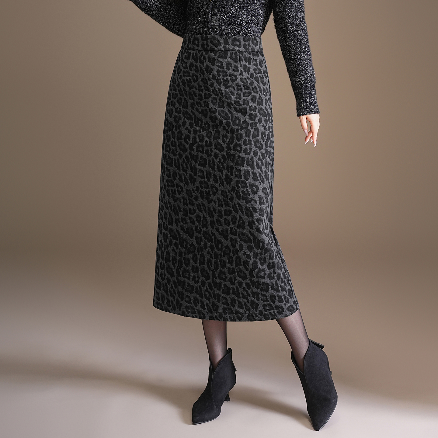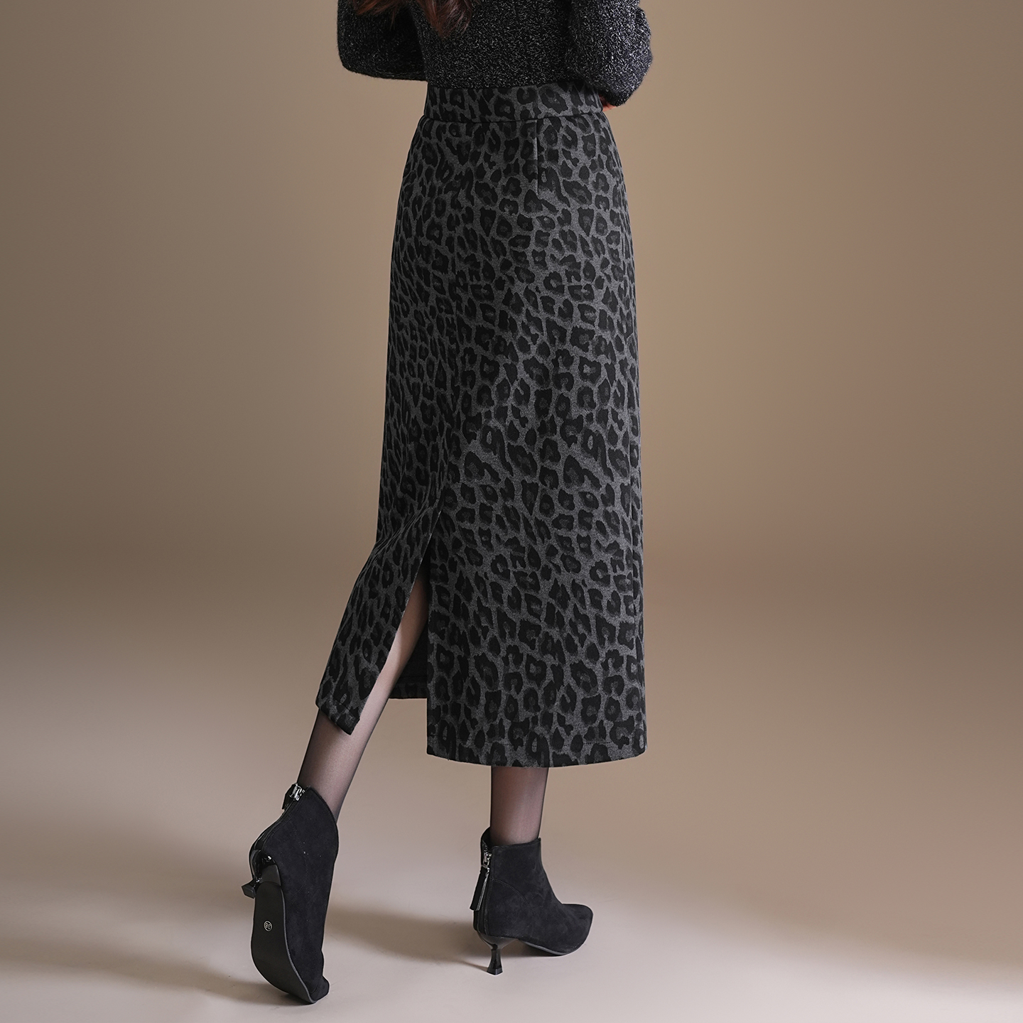 豹纹毛呢半身裙女秋冬2025新款高腰洋气遮胯长款a字裙开叉包臀裙