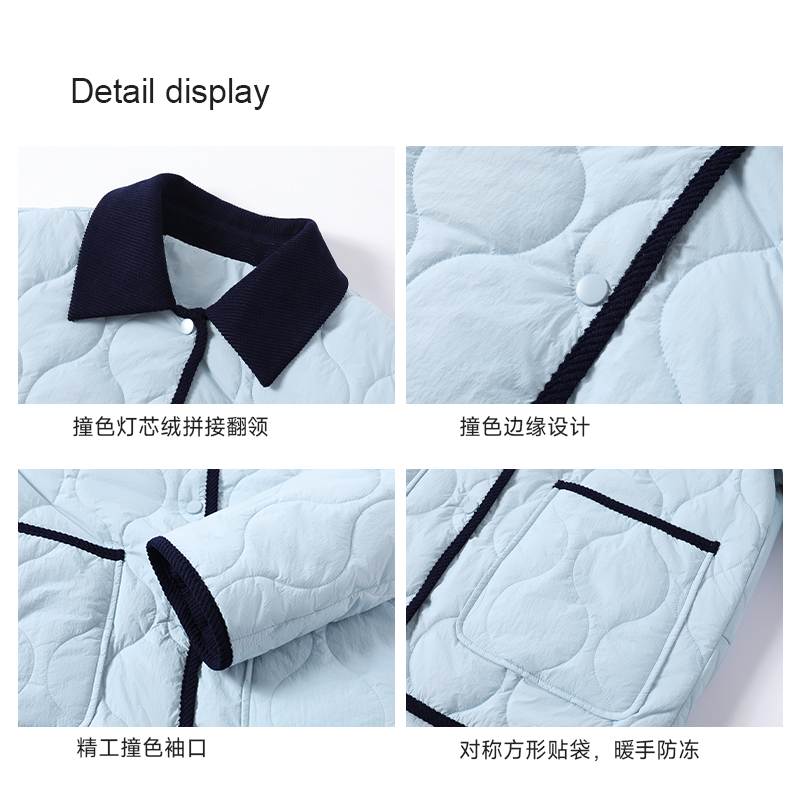 KV真维斯翻领棉服女冬季新款韩版宽松休闲简约百搭撞色棉衣外套
