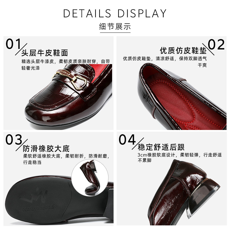 真皮单鞋女一脚蹬女鞋2025新款漆皮英伦风小皮鞋大码妈妈鞋春秋鞋