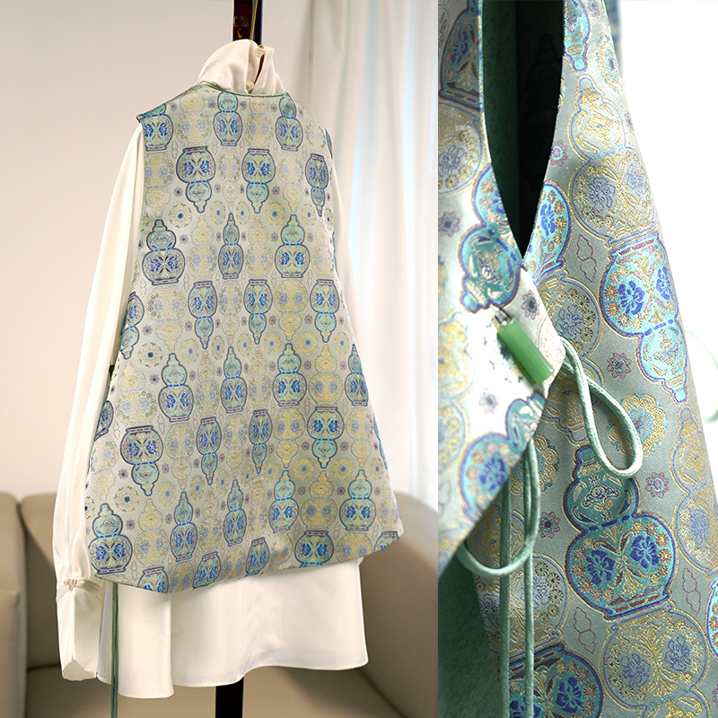 100%桑蚕丝毛明山宋锦葫芦纹宋锦原创设计新中式国风马甲背心上衣