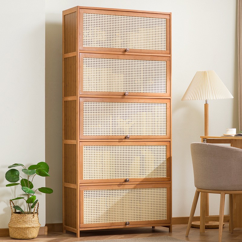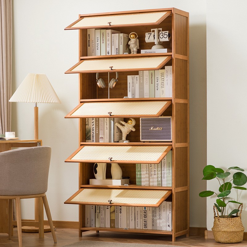 书柜现代简约带门防尘格子柜实木书架窄柜落地立柜置物储物柜组合