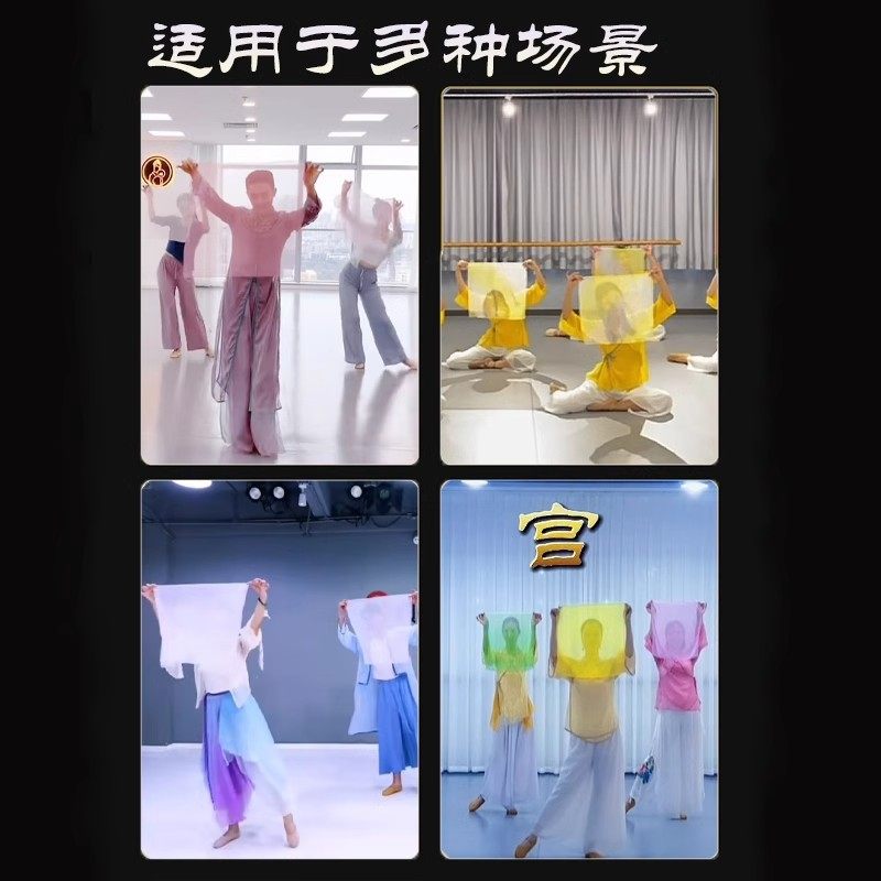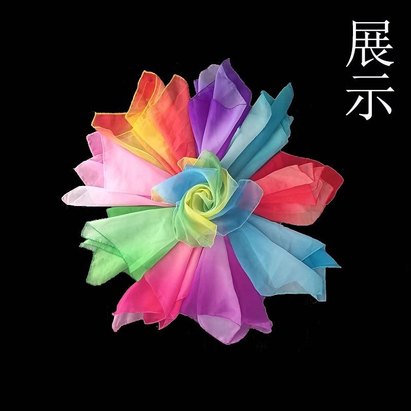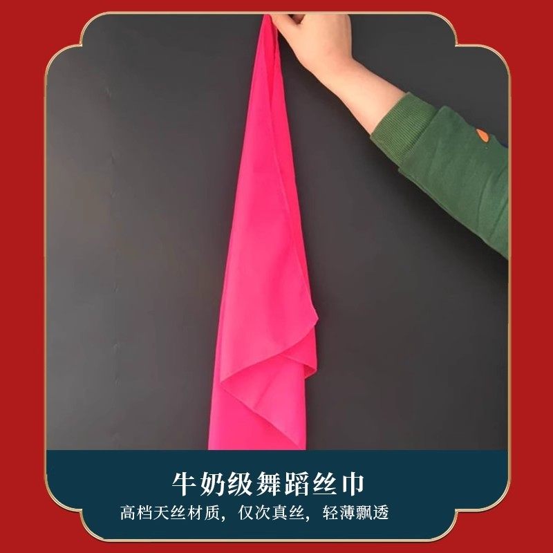 胶州秧歌扇子丝巾舞蹈红色考级正方形儿童舞蹈长丝巾专用表演道具