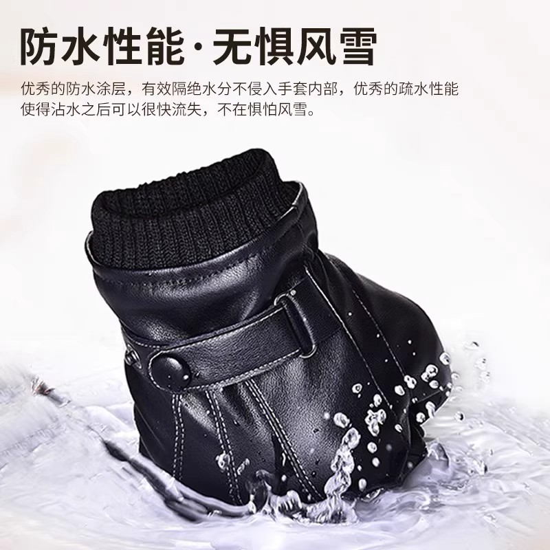 皮手套男冬季加厚绒保暖骑行摩托车手套冬天防寒风滑雪棉手套触屏