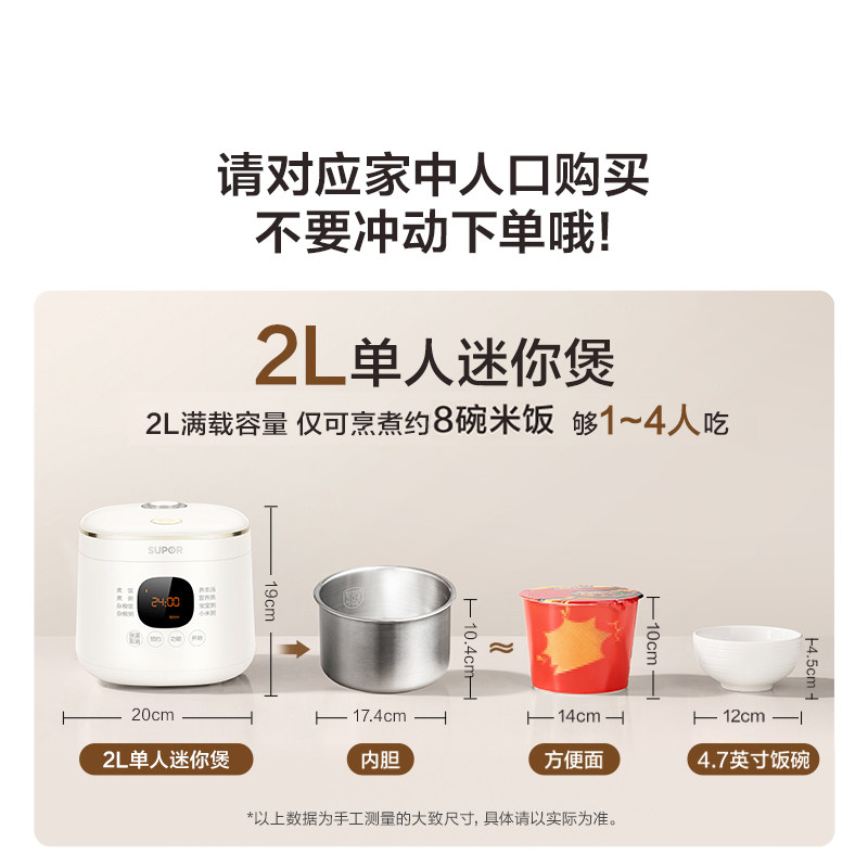 苏泊尔电饭煲1一3人家用0涂层电饭锅2L迷你不锈钢内胆官方旗舰店