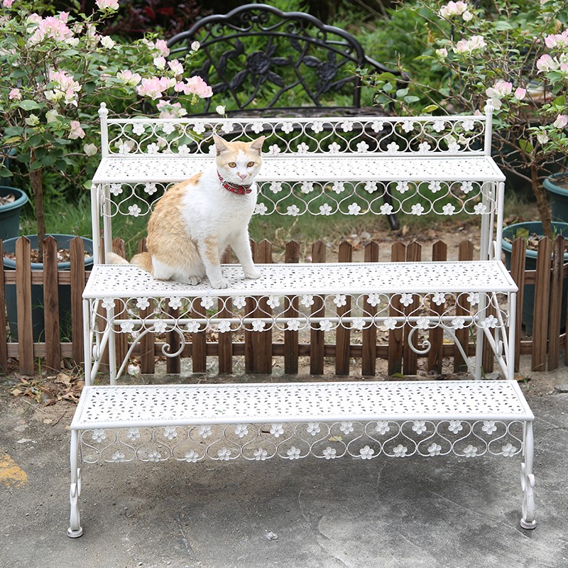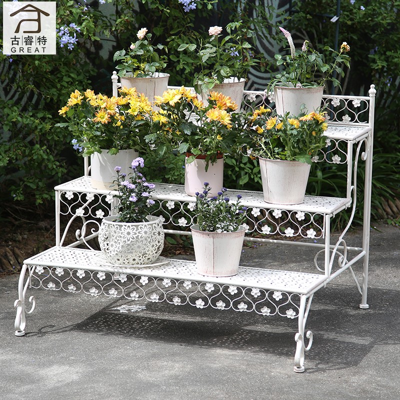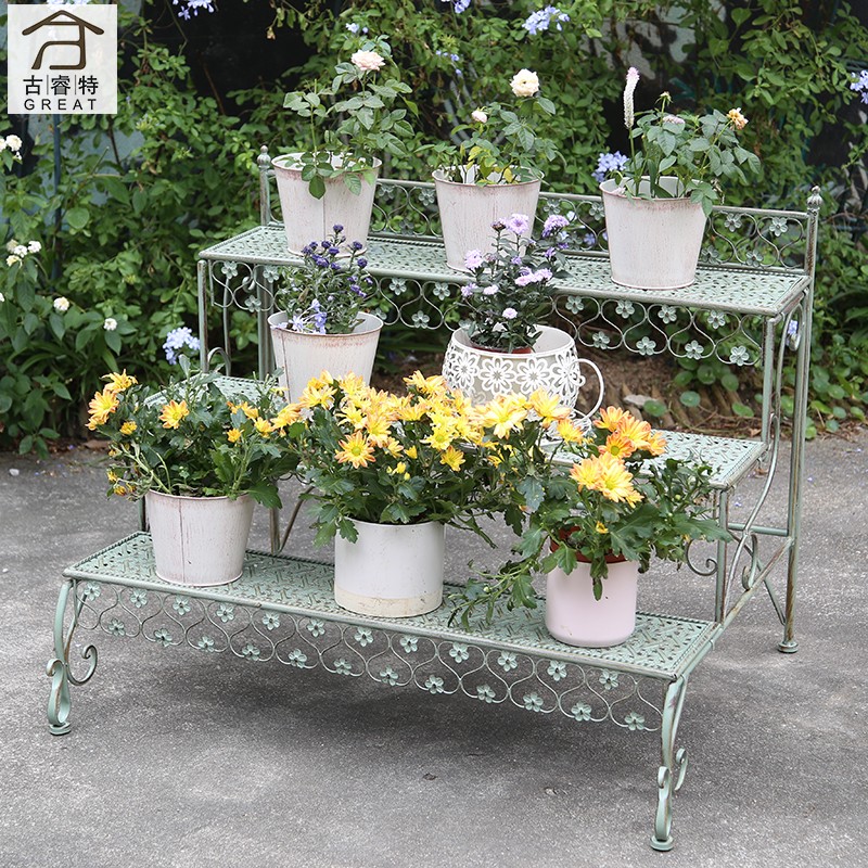 户外花园做旧铁艺阶梯多层花架欧式庭院别墅阳台花店绿植多肉层架