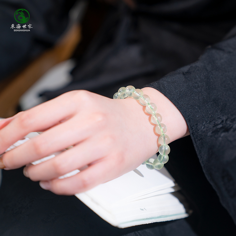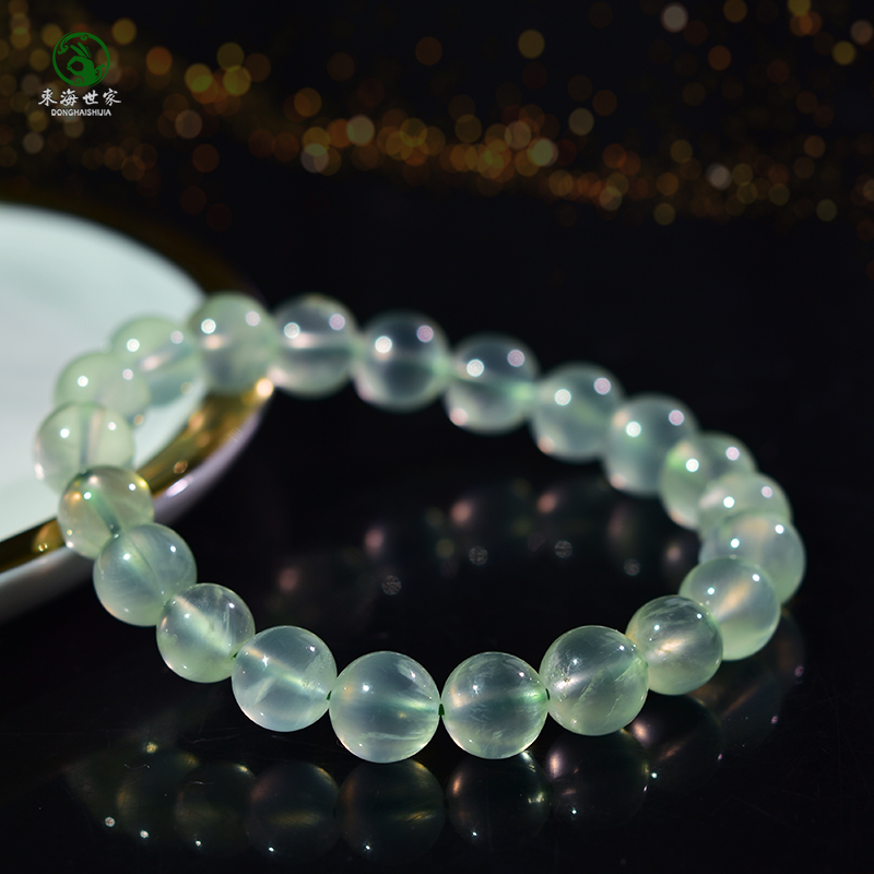 葡萄石手串女男东海水晶玛瑙玉髓翡翠宝玉石散珠子冰种荧光绿手链
