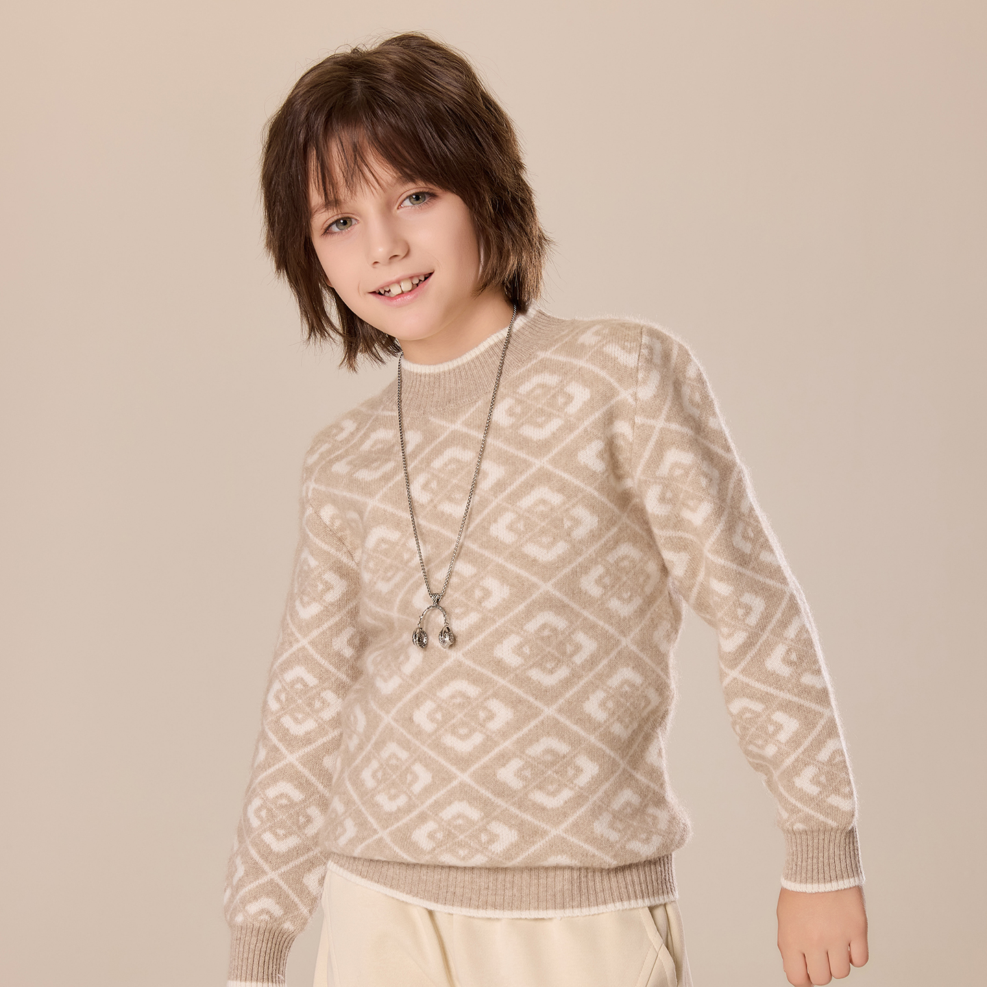 冬季儿童半高领加厚100纯山羊绒衫男童秋冬拼色菱格女童打底毛衣
