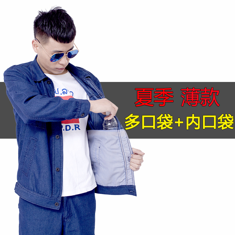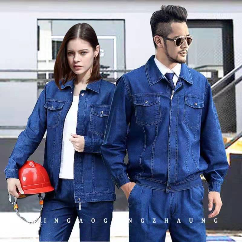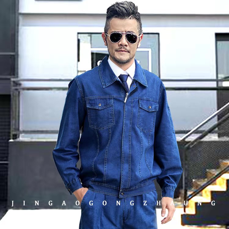 夏季薄款牛仔工作服套装男电焊防烫耐磨焊工服车间工厂建设劳保服