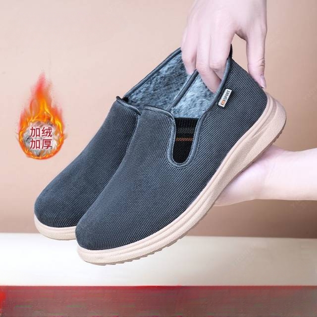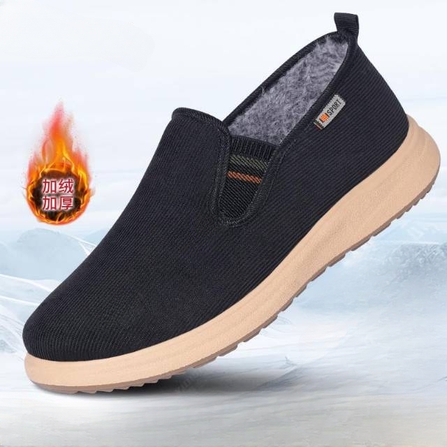 新款冬季加绒保暖北京布鞋男士棉鞋爸爸脚蹬中老年工作鞋防滑加厚
