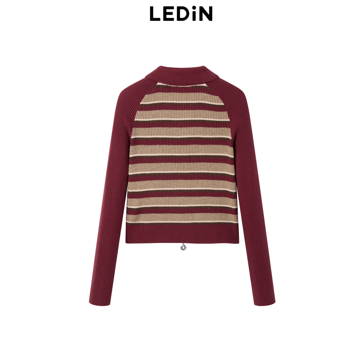 【商场同款】乐町彩色条纹插肩袖线开衫女冬季针织毛衣