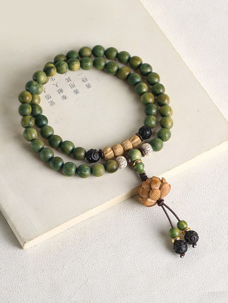 张真源同款天然老绿檀莲花双圈手串手持佛珠奶香檀香绕凤池原创