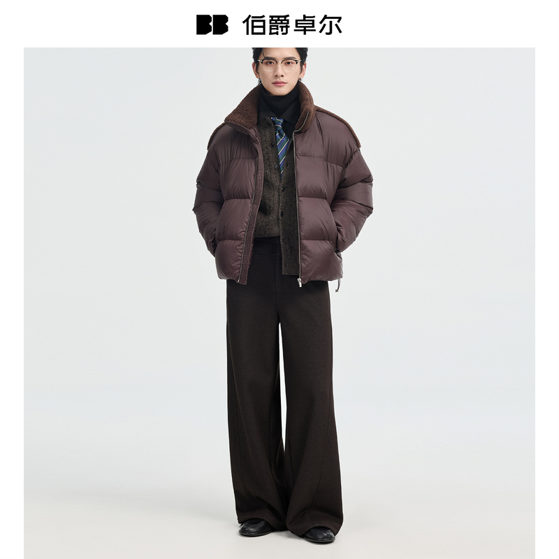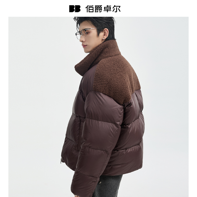 BJZE25深冬新款设计感立领短款羽绒服男士仿羊羔绒毛领保暖面包服