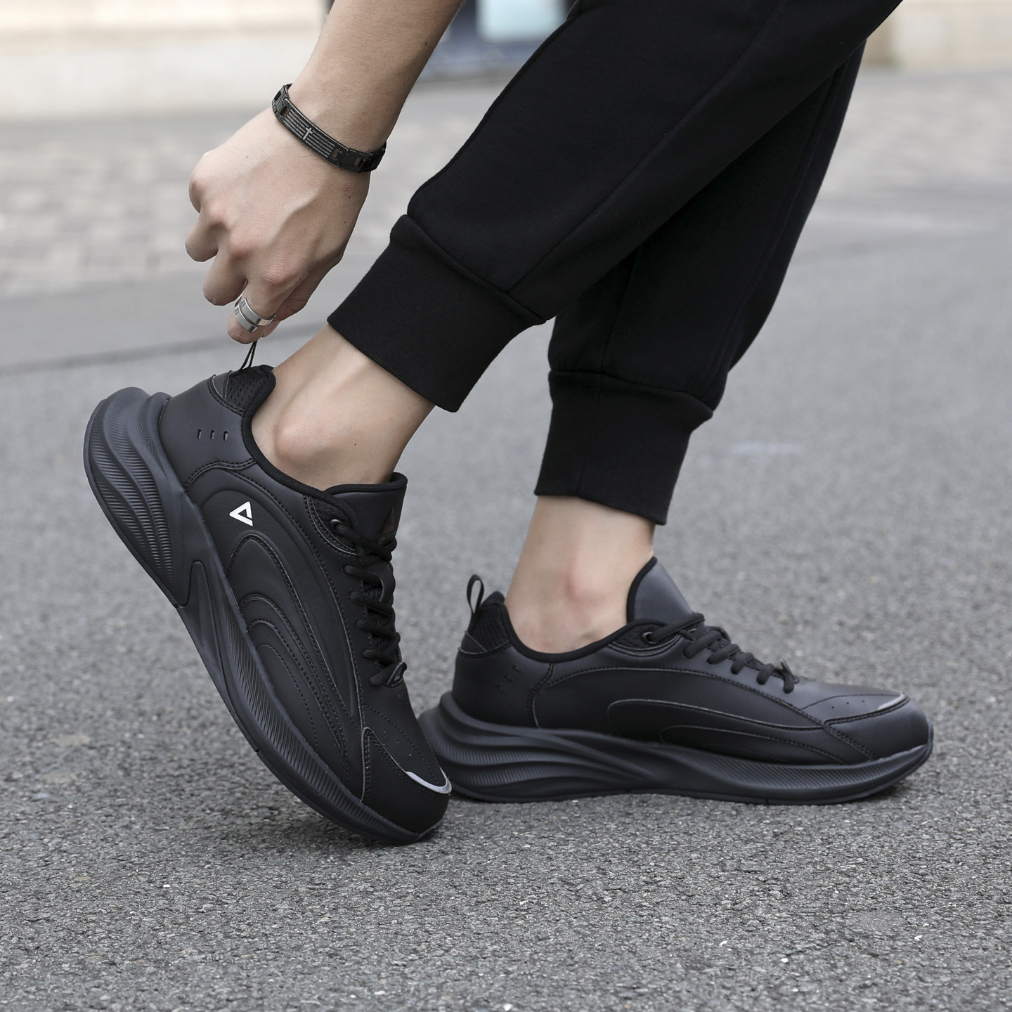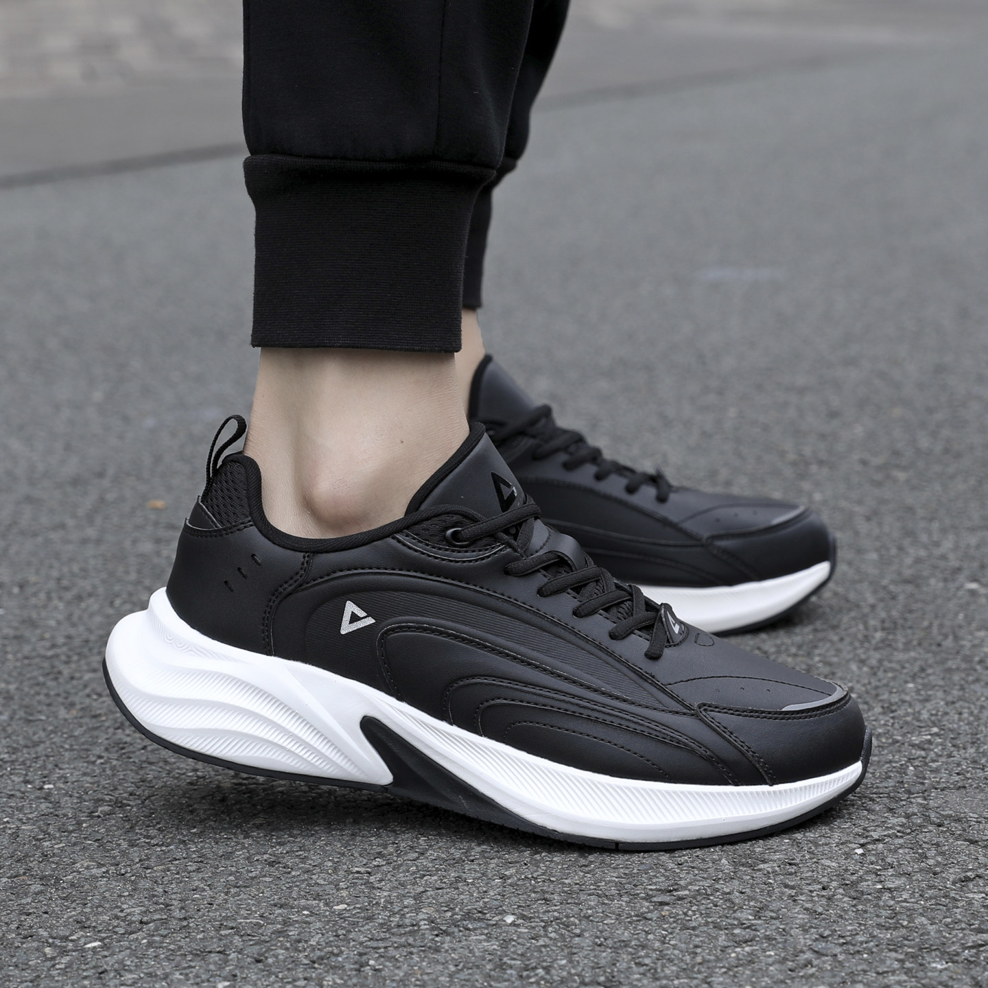 匹克态极跑步鞋男皮面防水运动鞋